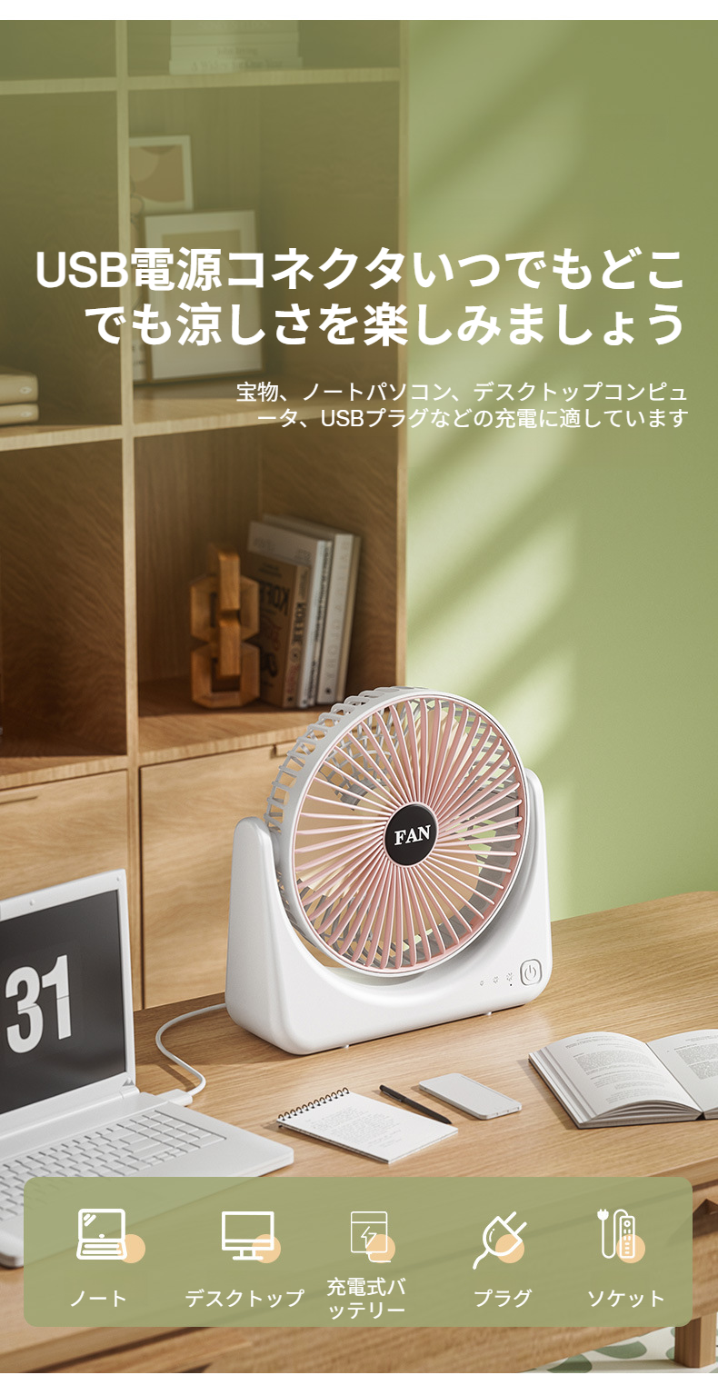 USB充電式オフィス用デスクトップ小型扇風機、学生寮用、家庭用ミニデスクトップ扇風機