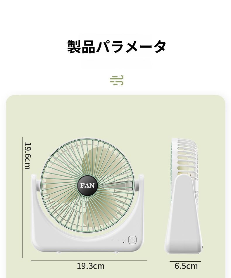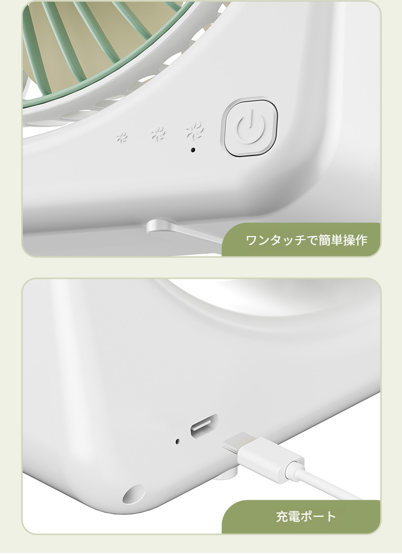 USB充電式小型デスクトップ扇風機の正面画像